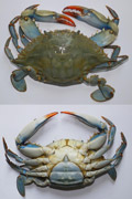 Callinectes sapidus maschio di 100x200 mm (esempl. conservato), mezzo miglio al largo di Fano, novembre 2010
