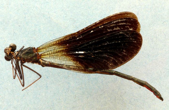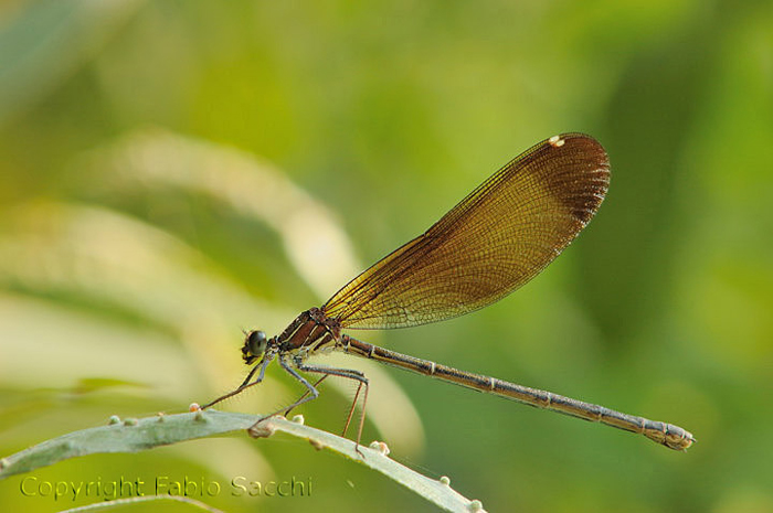 Calopteryx haemorrhoidalis femmina (esempl. conservato), Fosso della Vena (affl. F. Candigliano) a Naro, agosto 1994