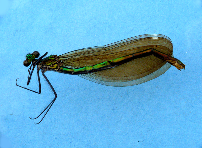Calopteryx virgo femmina (esempl. conservato), T. Auro a Parchiule (Borgo Pace), luglio 1994