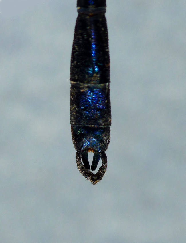 Calopteryx virgo maschio, estremità dell'addome (esempl. conservato), F. Bosso in loc. Eremita, settembre 2008