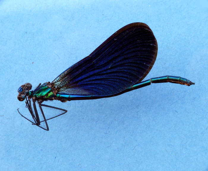 Calopteryx virgo maschio (esempl. conservato), T. Auro a Parchiule (Borgo Pace), luglio 1994