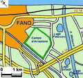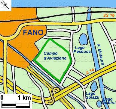 Campo d'Aviazione di Fano. Carta top. Reg. Marche 110 III (dati cartogr. numerici dell'I.G.M. - Autorizz. n. 4877 del 2-11-1998; autorizz. Uff. Cartografia e Inform. Territoriali Reg. Marche del 13-3-1999)