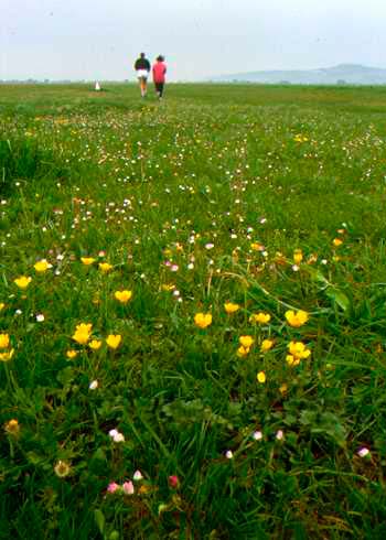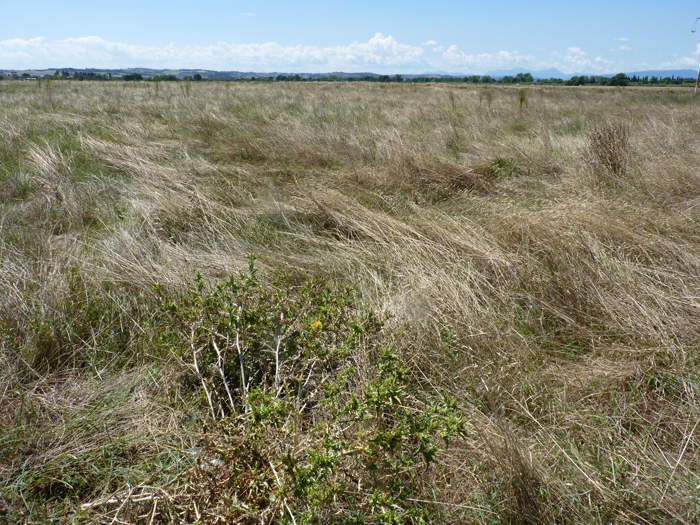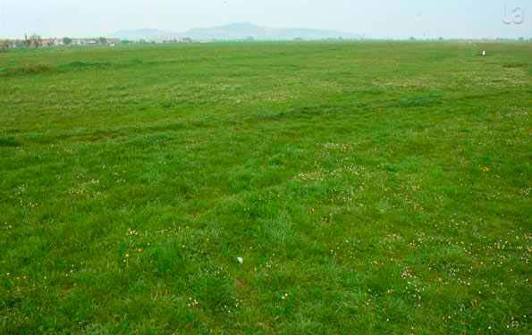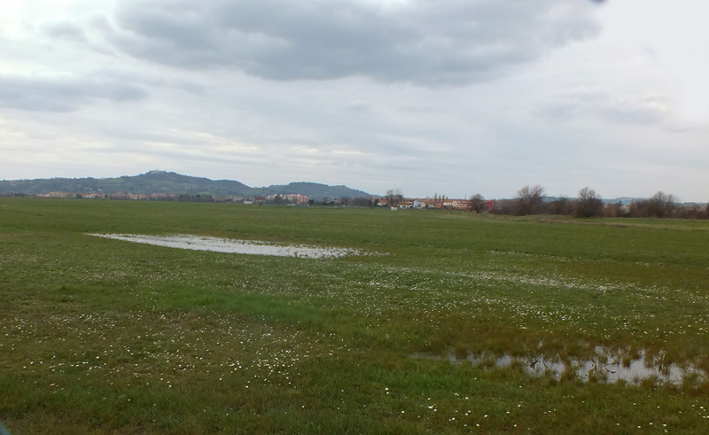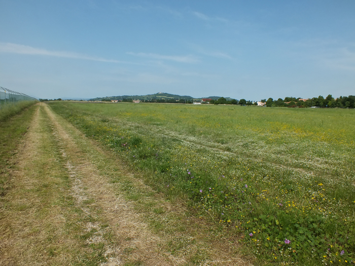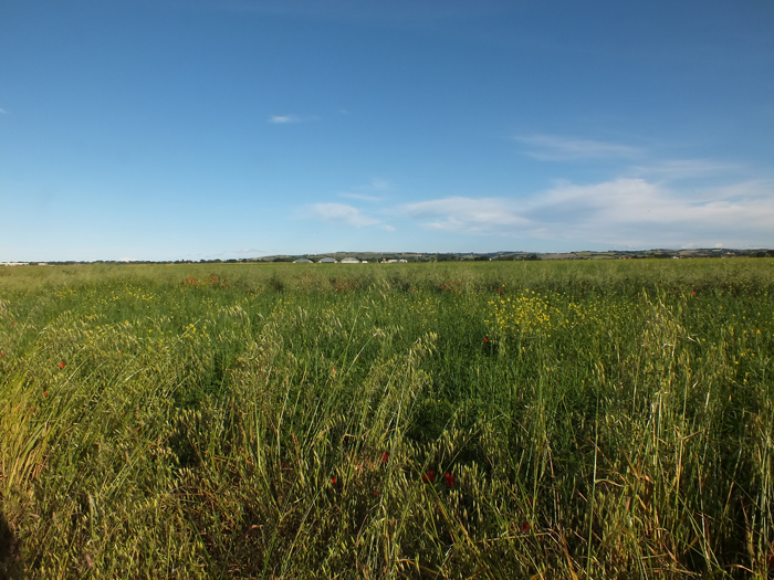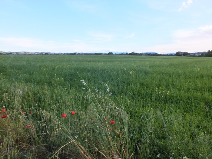 Campo d'Aviazione di Fano, giugno 2013. A sinistra la recinzione dell'Aeroporto, sullo sfondo la collina di Monte Giove