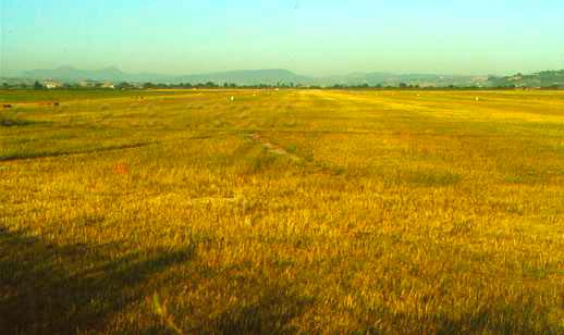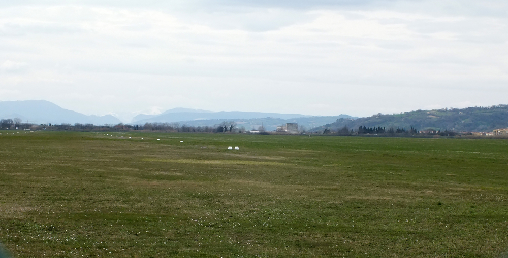 Campo d'Aviazione di Fano, giugno 1982. Sullo sfondo i rilievi appenninici del M. Catria-M. Acuto e i Monti del Furlo